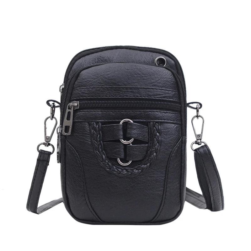 Stay organized on the go with this stylish high-capacity shoulder bag made of durable PU leather. It features multiple compartments to hold your essentials. The mini size is perfect for carrying your mobile phone and the built-in earphone jack allows you to listen to music on the move.