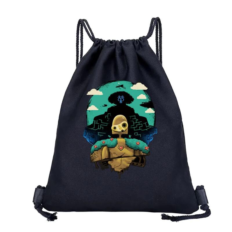 Japanese Cartoon Print Canvas Gym Backpack Drawstring Shoulder Bag