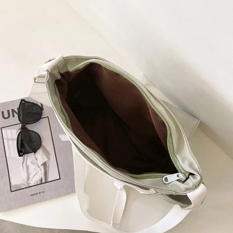 Carry your essentials in style with this Japanese Harajuku windsuit-inspired canvas messenger bag. Perfect for female students.