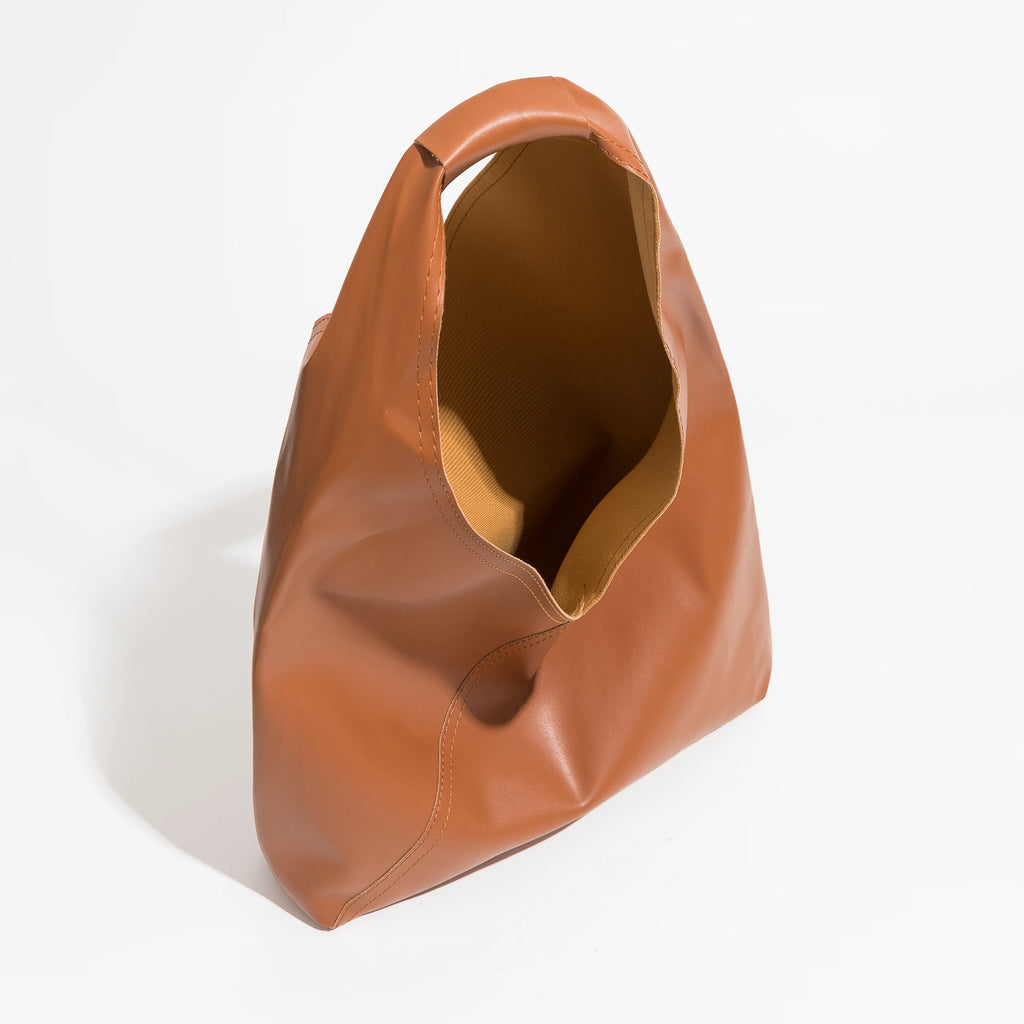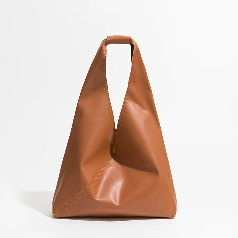 This trigle shape hobo bag is made of PU leather, featuring a Japanese style design. It is stylish and lightweight, perfect for everyday use.