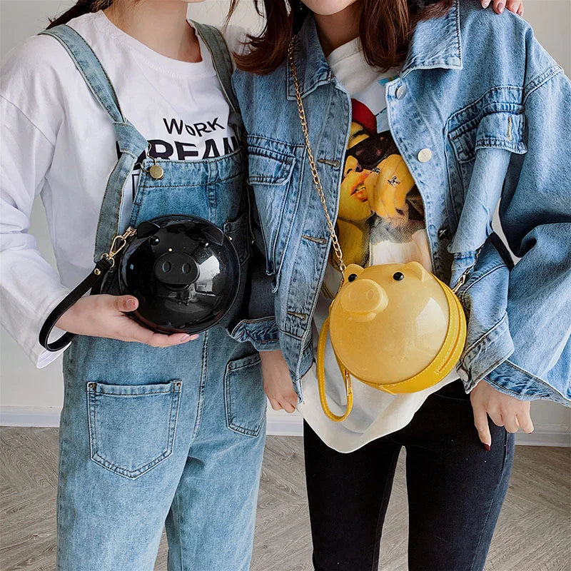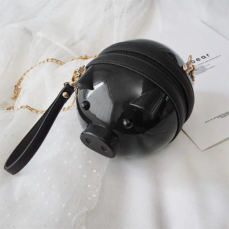 This adorable Jelly Pig Shoulder Bag is a creative accessory perfect for girls. It features a unique design and chain strap for a stylish look.