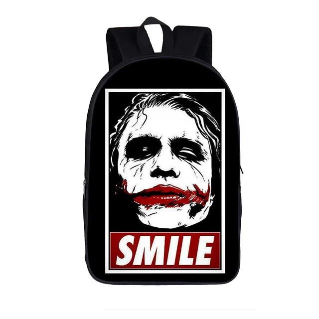 This stylish backpack features a design inspired by the Joker and Joaquin Phoenix. It's suitable for teenagers, girls, boys, and children as a school bag or casual daypack.