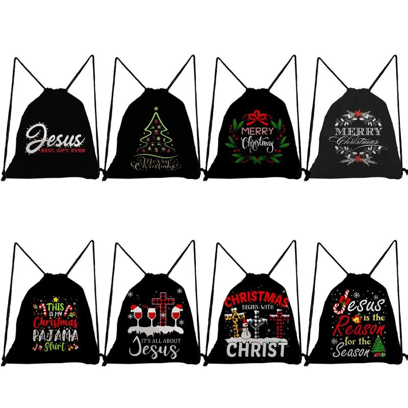 Kids School Bag Drawstring Christmas Tree Gift Backpack