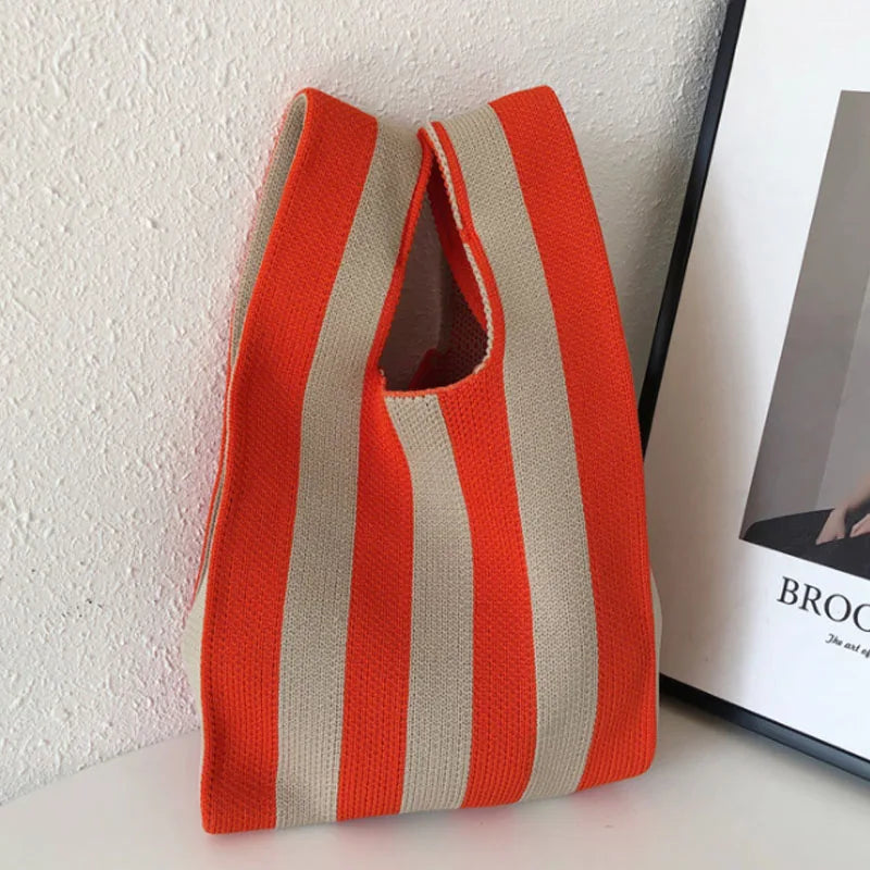This women's shoulder bag features a stylish knitted checkerboard design, ideal for casual occasions.