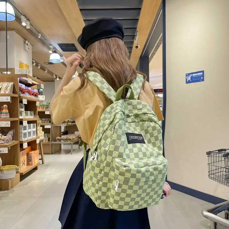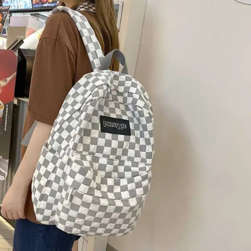 Stay stylish and organized with this chic checkerboard nylon backpack. Perfect for students and casual wear.