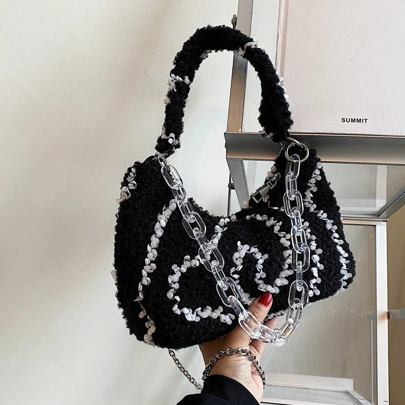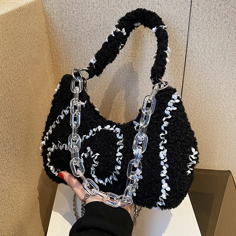 Lamb Plush Crossbody Bag Chain Hair Bag