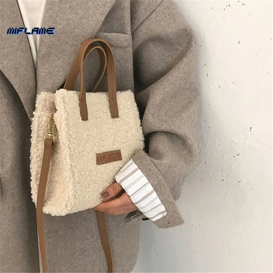 Lamb Wool Winter Shoulder Bag Soft Autumn Cross-body Beige Khaki Girls