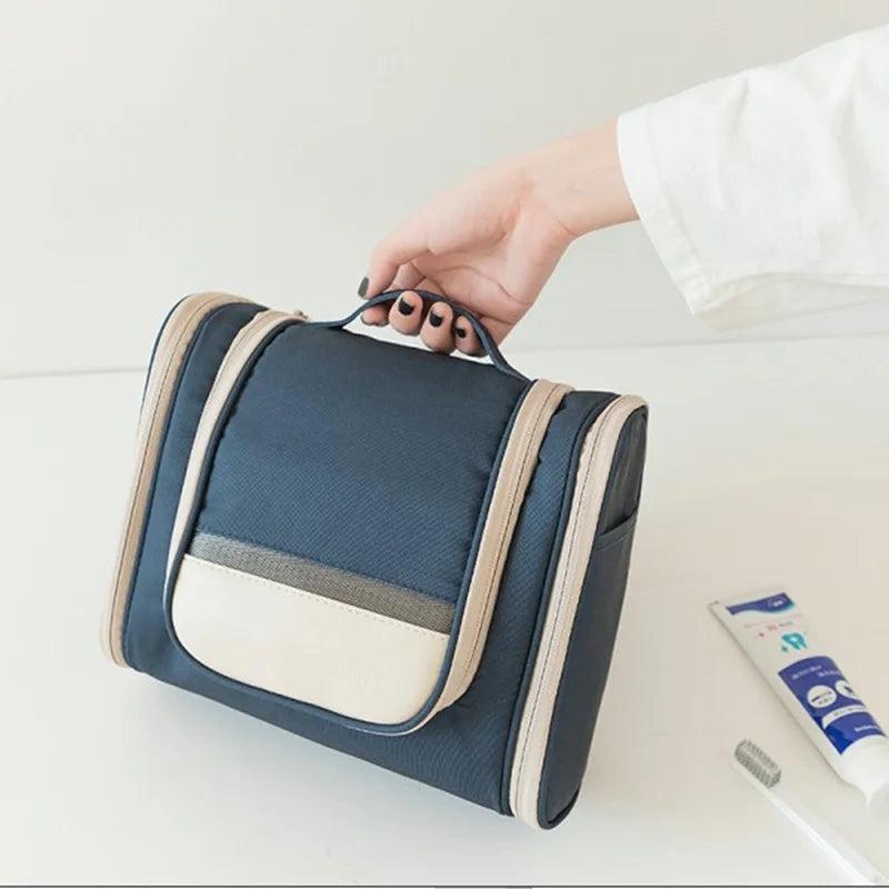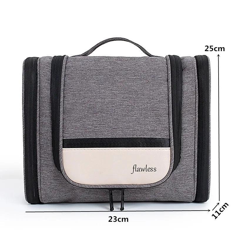 This hanging cosmetic bag is a must-have for all your beauty needs. It offers ample storage space and keeps your toiletry tools organized while traveling.
