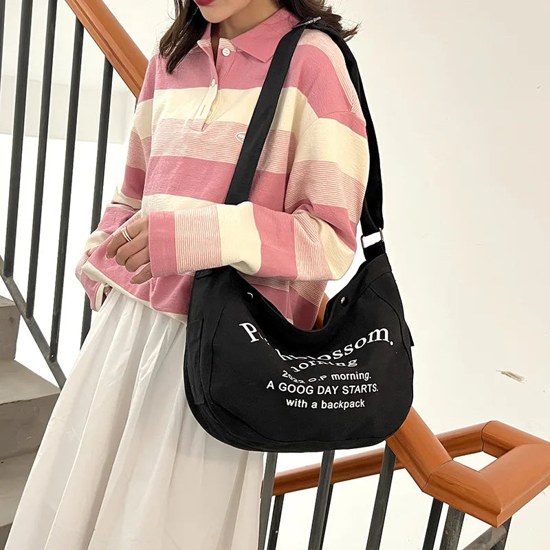 This versatile bag is perfect for women in Japan and Korea, featuring a broadband canvas design. It offers ample space for all your belongings.