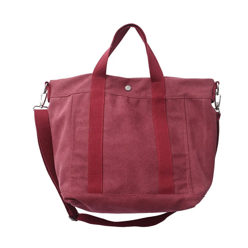 Large Capacity Canvas Tote Bag Women Casual Solid Color Travel Shoulder Bag