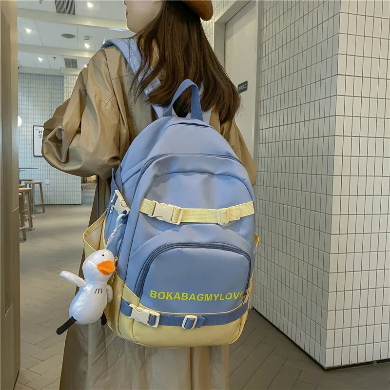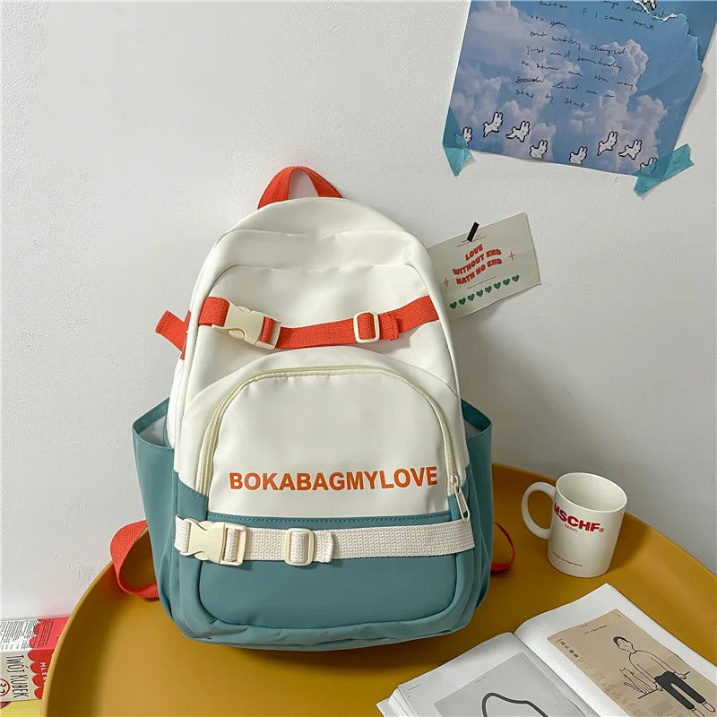 This backpack is perfect for school, travel, and everyday use. It offers a spacious interior with a stylish contrast design.