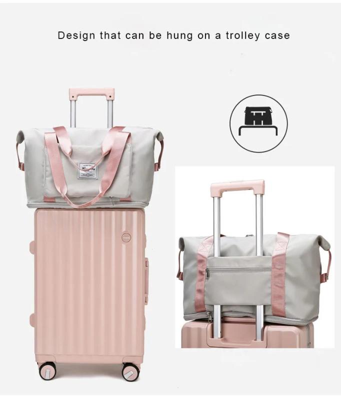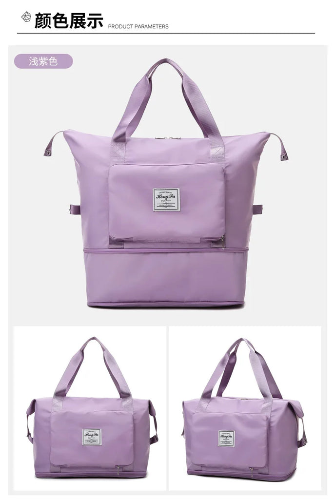 This sports bag is designed for yoga and fitness enthusiasts with its expandable storage capacity.