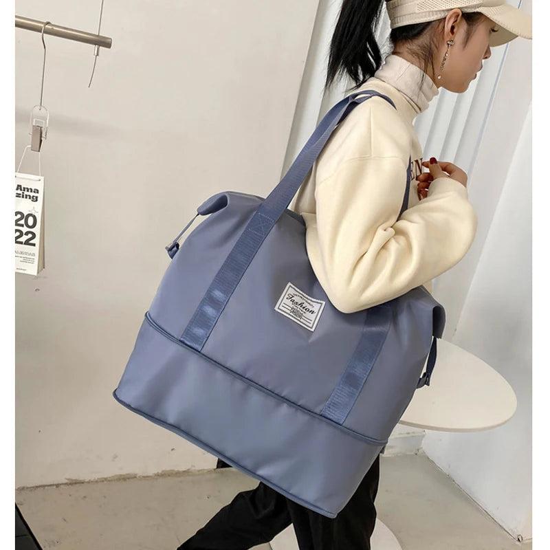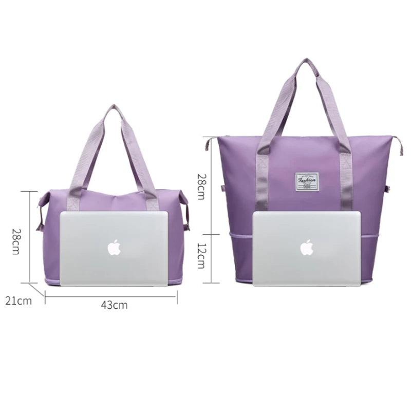 This large capacity folding travel bag is perfect for women on the go. It's waterproof and collapsible, making it easy to store when not in use. The tote design is ideal for carrying on luggage or as a handbag.