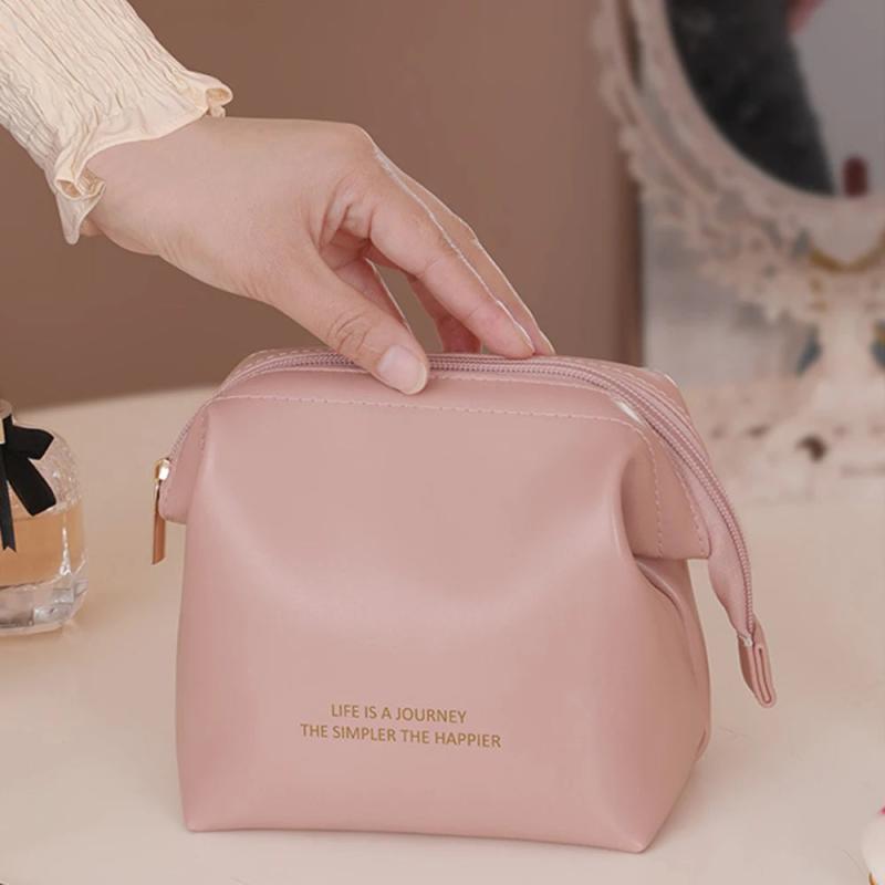 Keep your cosmetics and toiletries organized with this stylish and spacious pu leather travel makeup bag.