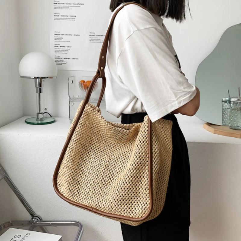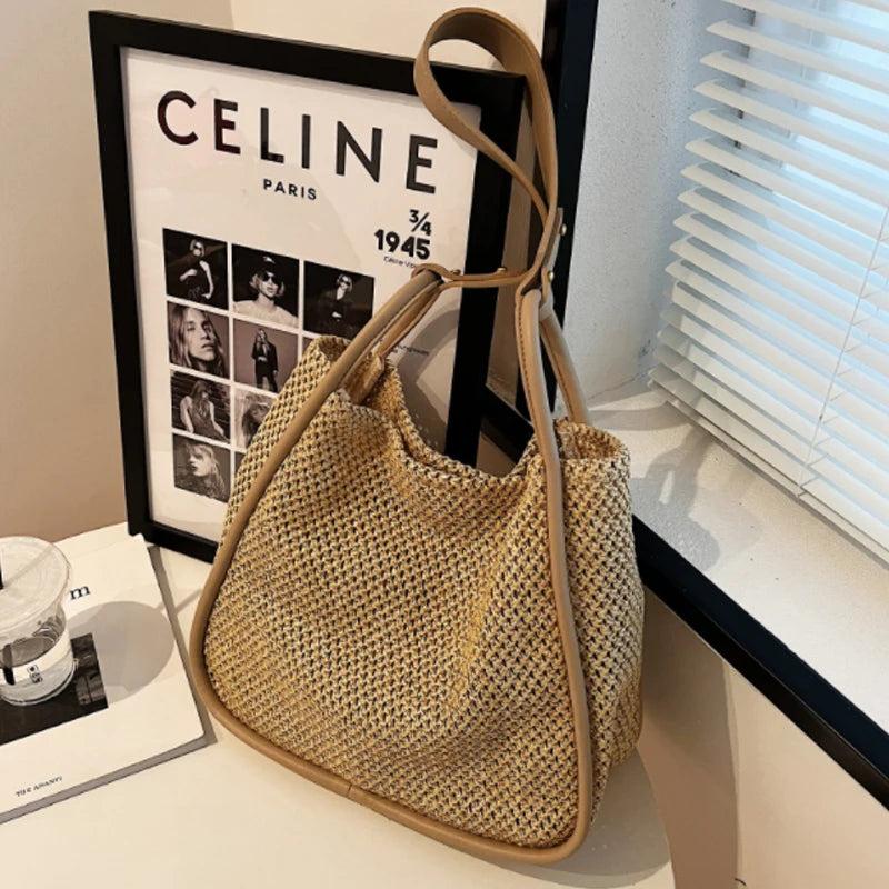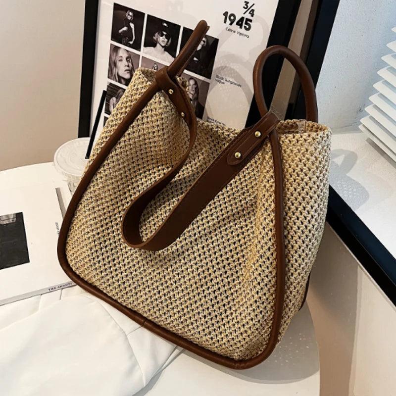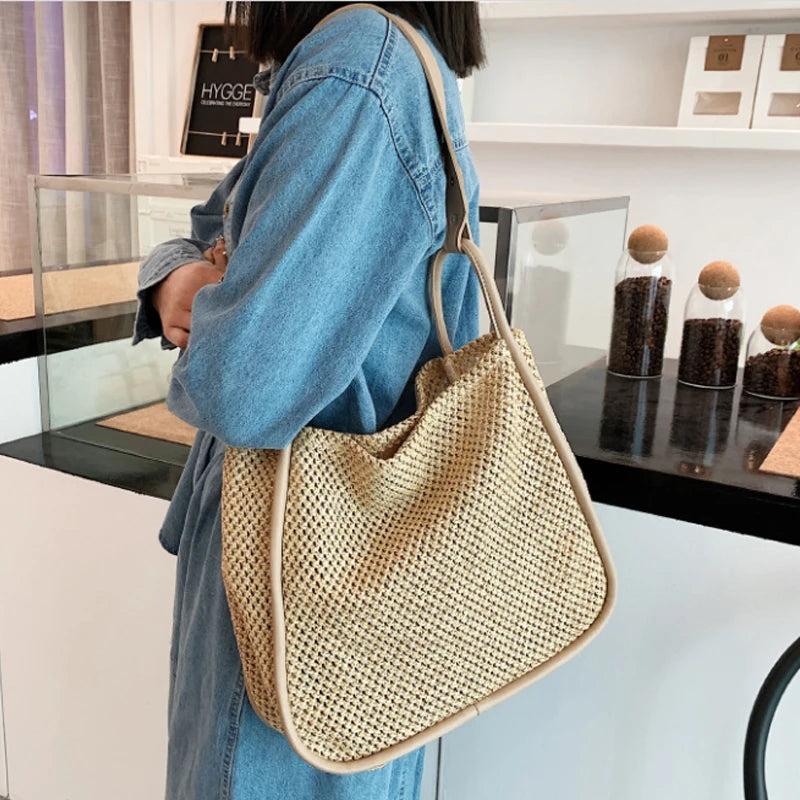Large Capacity Portable Straw Woven Bag Women's Tote Shoulder Bag