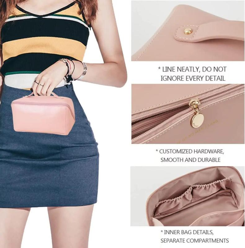 This multifunctional cosmetic bag is designed for travel with a large capacity to store all your toiletries and makeup essentials.