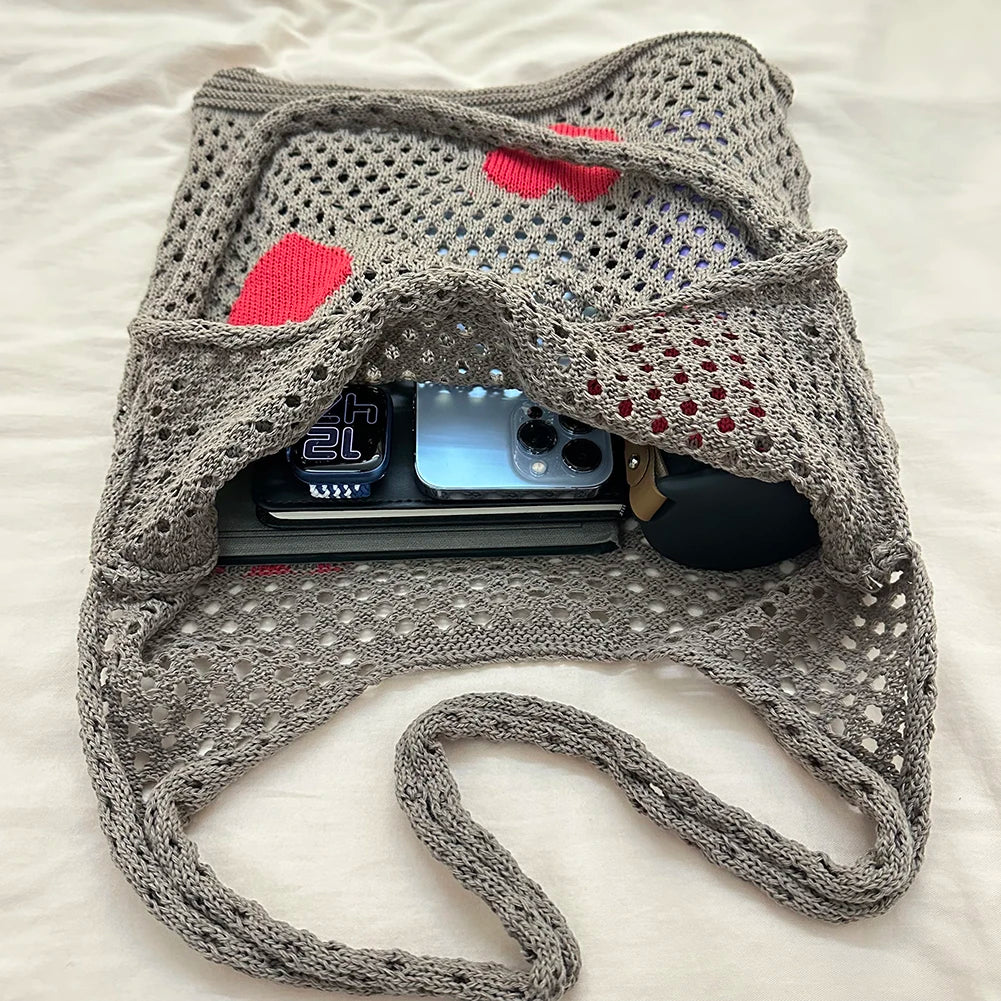 This large capacity crochet tote bag is perfect for women and girls. Made with eco-friendly materials, it features a mesh net design and a foldable, reusable construction. The hollow out pattern adds a stylish touch to this hobo bag.