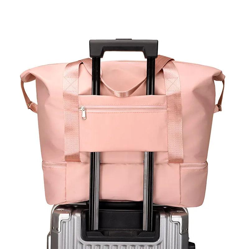 Stay organized and stylish on the go with this large travel duffle bag that features a dry wet separated design. Perfect for outdoor activities, gym workouts, and fitness enthusiasts. Made of durable and waterproof material.