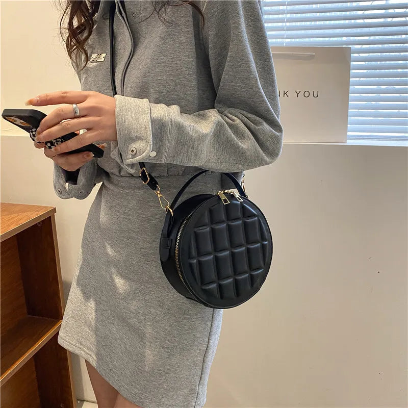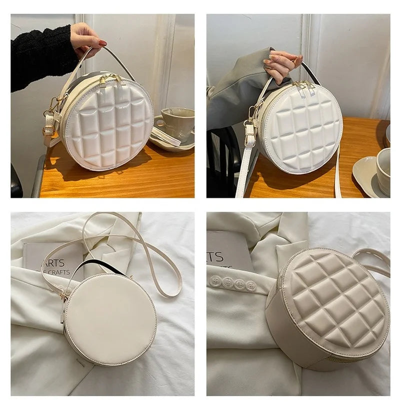 • Circular shoulder bag design