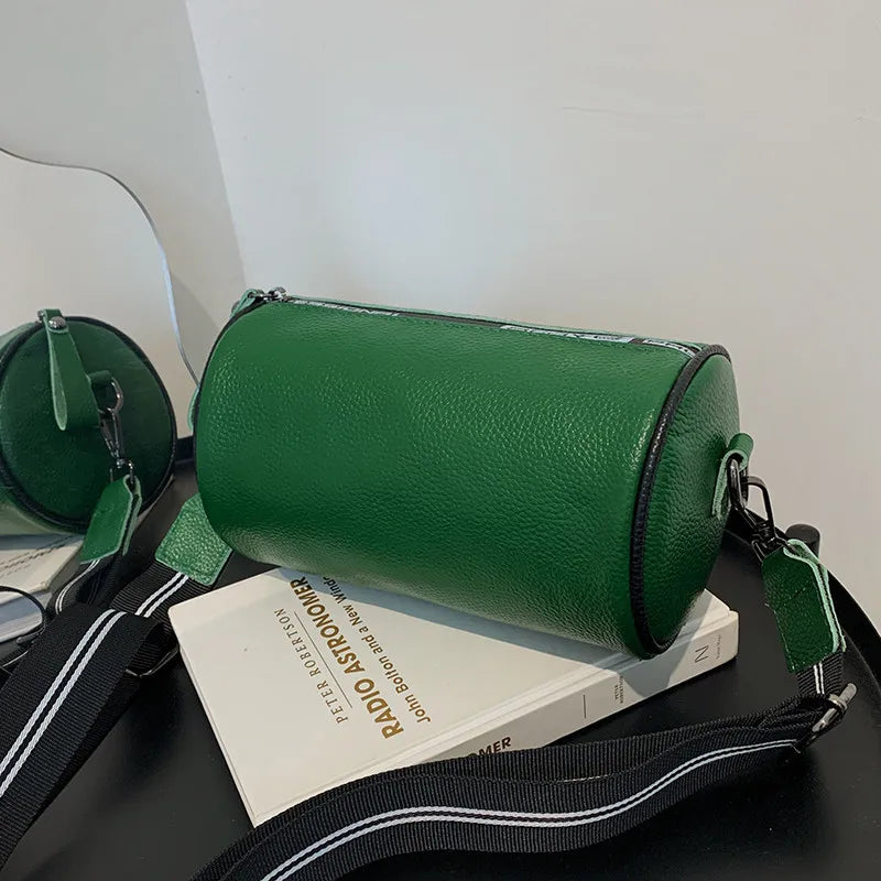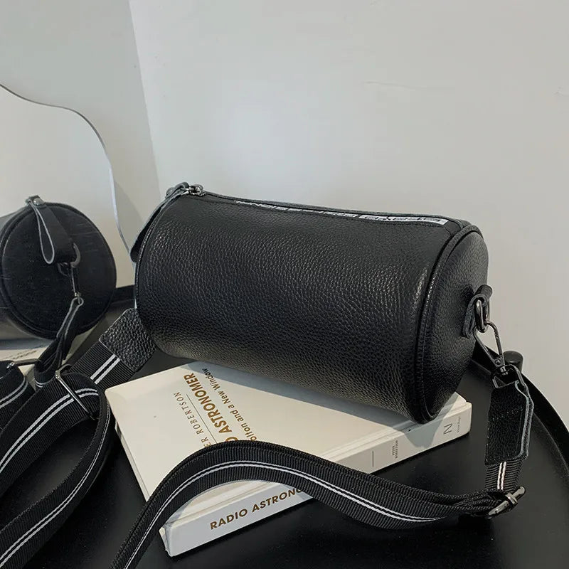 Stay stylish and organized with this versatile cylindrical leather shoulder bag. Perfect for everyday use, it offers both casual charm and practicality.