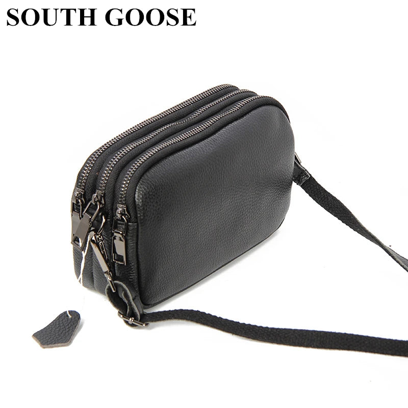 Stay organized with this three-layer zippered shoulder bag made of high-quality leather. Perfect for carrying your essentials in style.