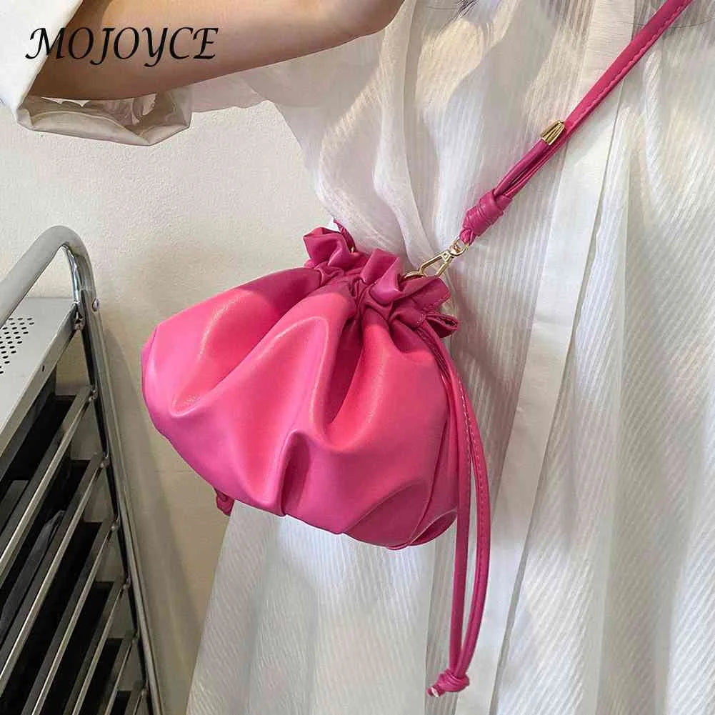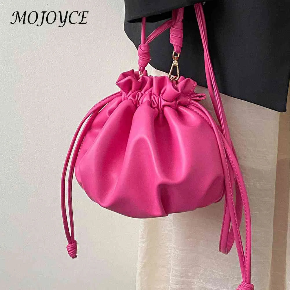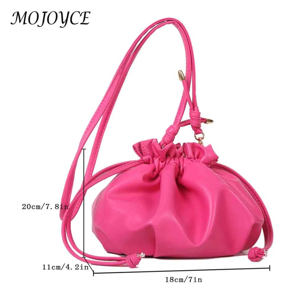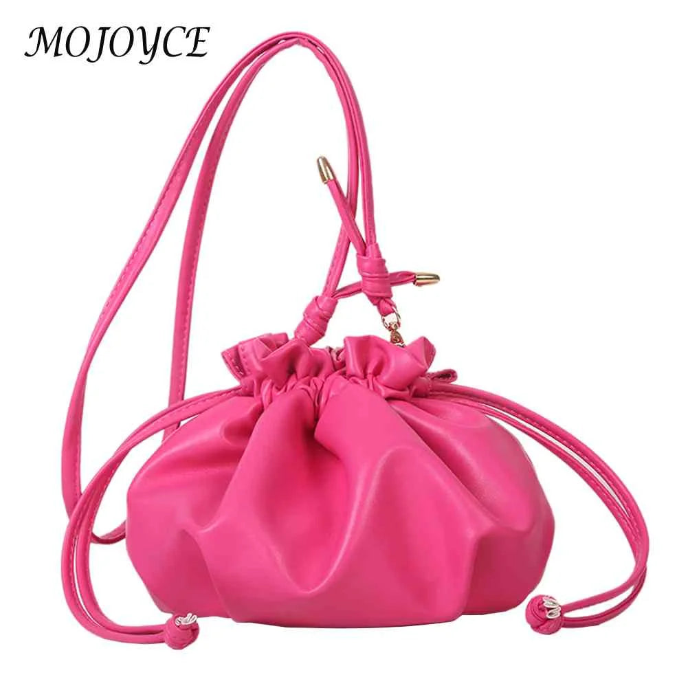 Leather Women Shoulder Crossbody Bag Drawstring Mini Purse Hand Bag
