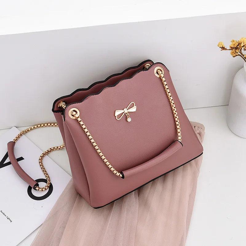 Leisure PU Leather Bow Women Shoulder Bag Solid Satchels Female Crossbody Bag