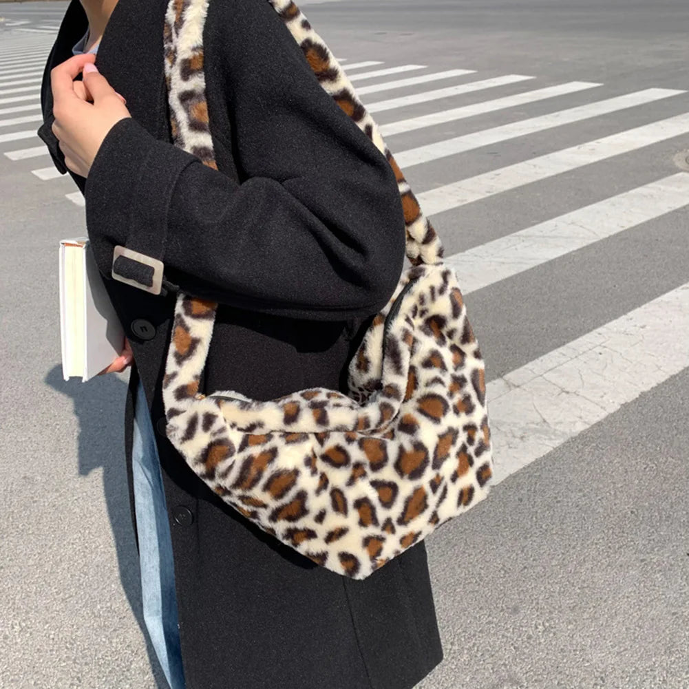 Leopard Fur Crossbody Bag Zipper Large Capacity Soft Plush Autumn Travel