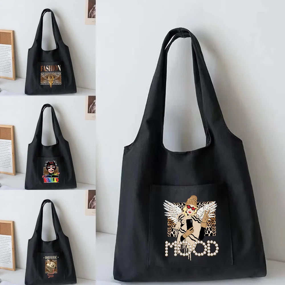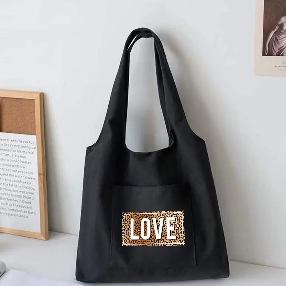 Leopard Print Vest Bag Women's Shoulder Canvas Tote Casual Shopper Shopping Bag