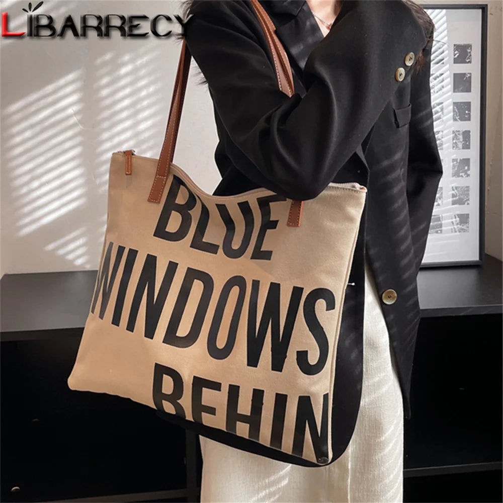 Letter Pattern High Canvas Women's Bag Large Capacity Ladies Shoulder Bag