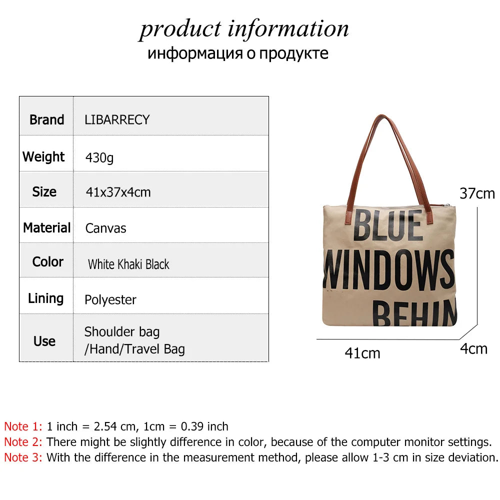 This stylish women's tote bag is made of high-quality canvas, featuring a letter pattern design. It offers a large capacity and is perfect for daily use.