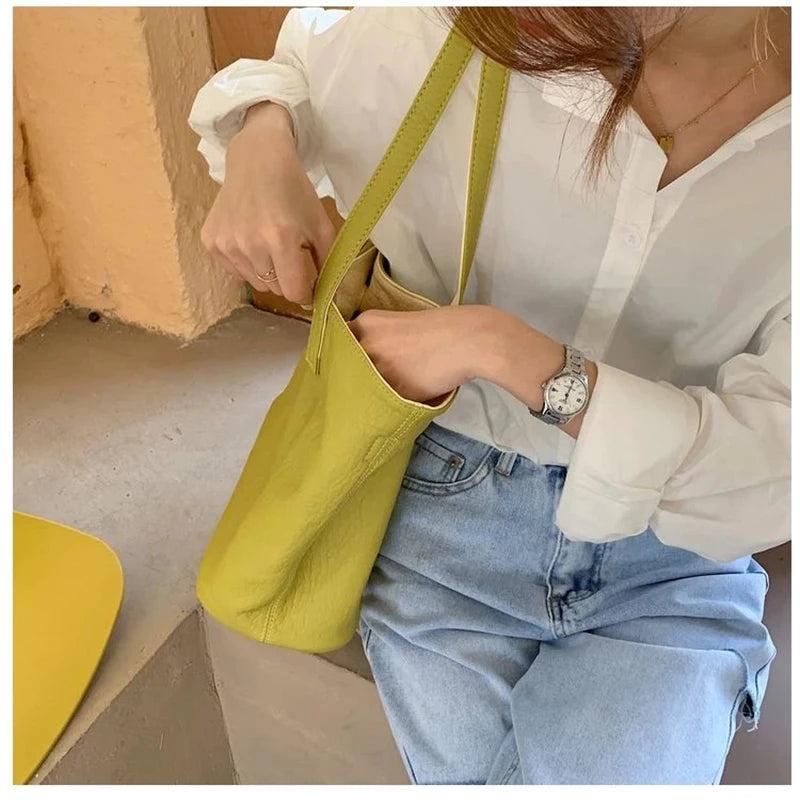 Light Washed PU Leather Women Bag Double Sided Tote Bags