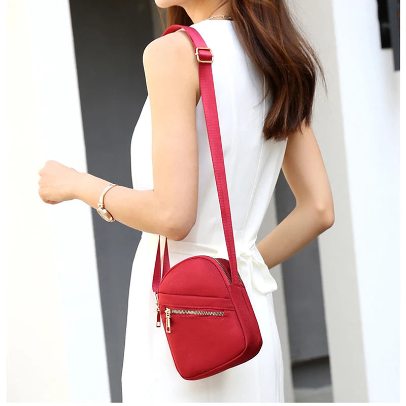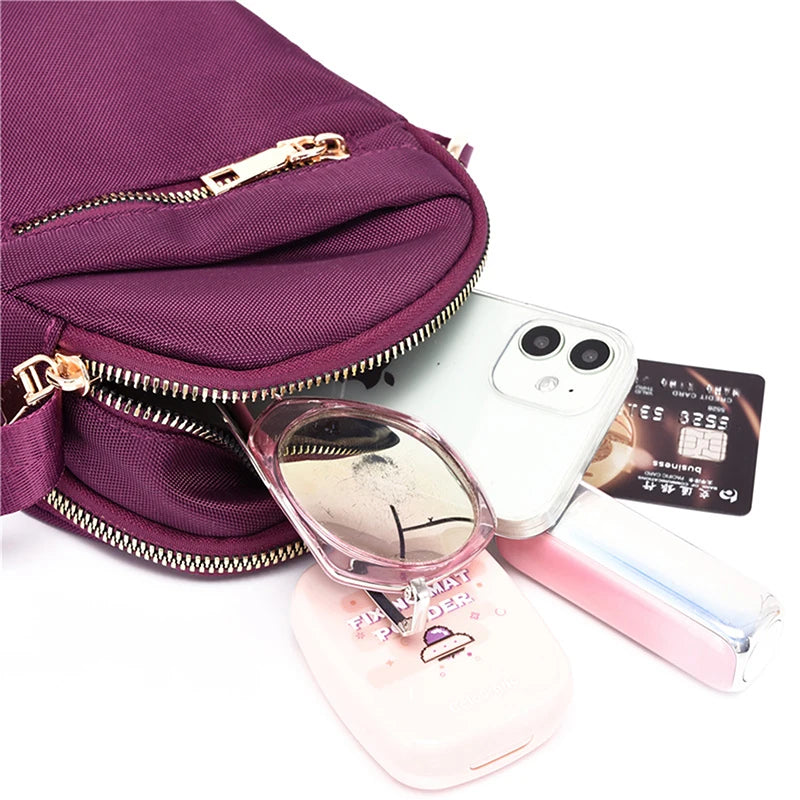 This crossbody bag is made of lightweight Oxford cloth, perfect for carrying your essentials. It can be worn as a shoulder bag, a diagonal bag, or a mobile phone holder.