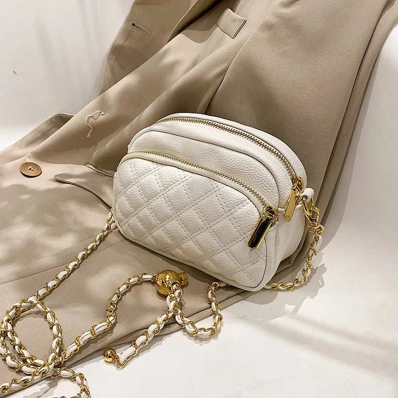 Lingge Chain Shoulder Phone Bag Girl Cross Body Bag Wallet