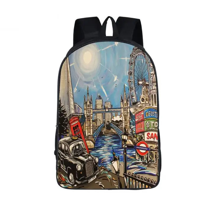 London Landscape/Eiffel Tower Schoolbag - Men/Women Backpack for Teenagers