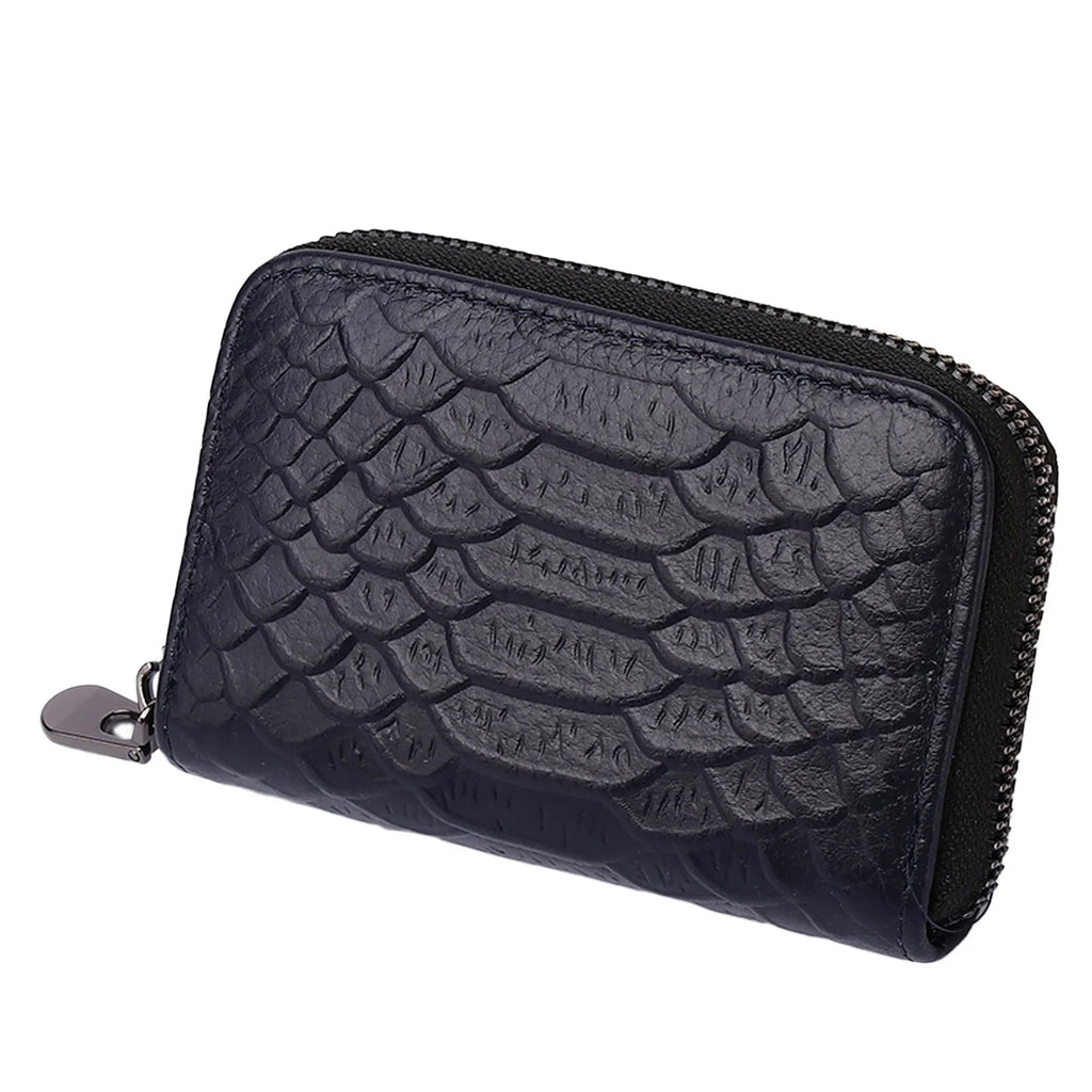 This long wallet is designed for both men and women with a solid serpentine pattern. It features a hasp closure, multiple card slots, and a phone bag. The flat design makes it easy to carry.