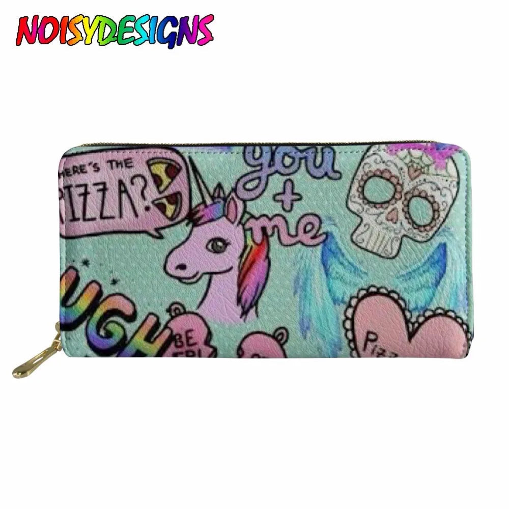 Long Wallet Women Flower Unicorn Wallet Ladies Leather Wallets PU Small Long Pur