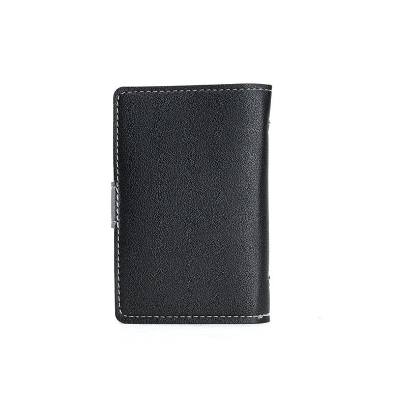 This leather card wallet is designed for both men and women, made from high-quality lychee driver's leather. It offers multiple functions and a sleek design.