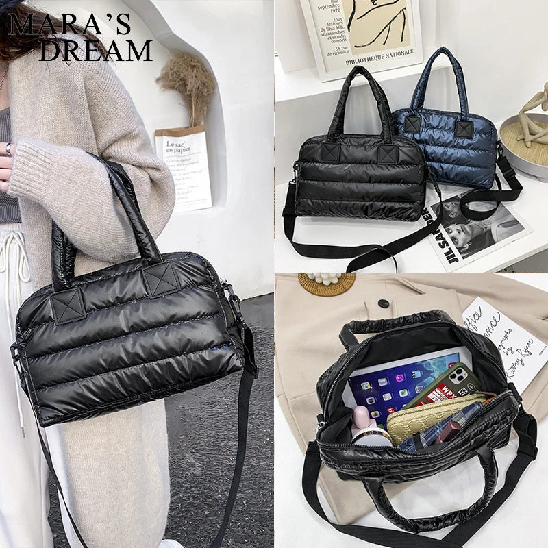 Stay organized and stylish with Mara's Dream large shoulder bag made of waterproof nylon. This spacious bag features space pad cotton feather down, ideal for everyday use.