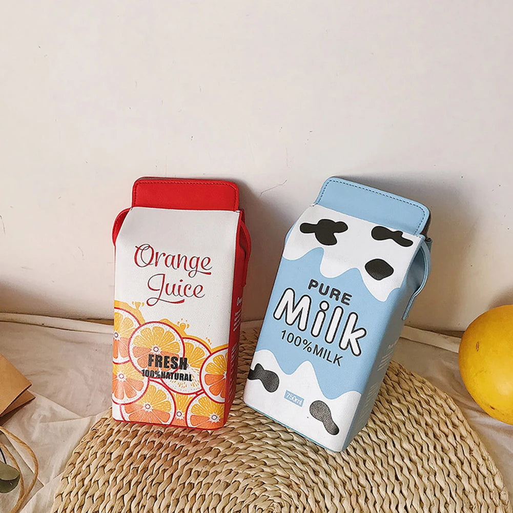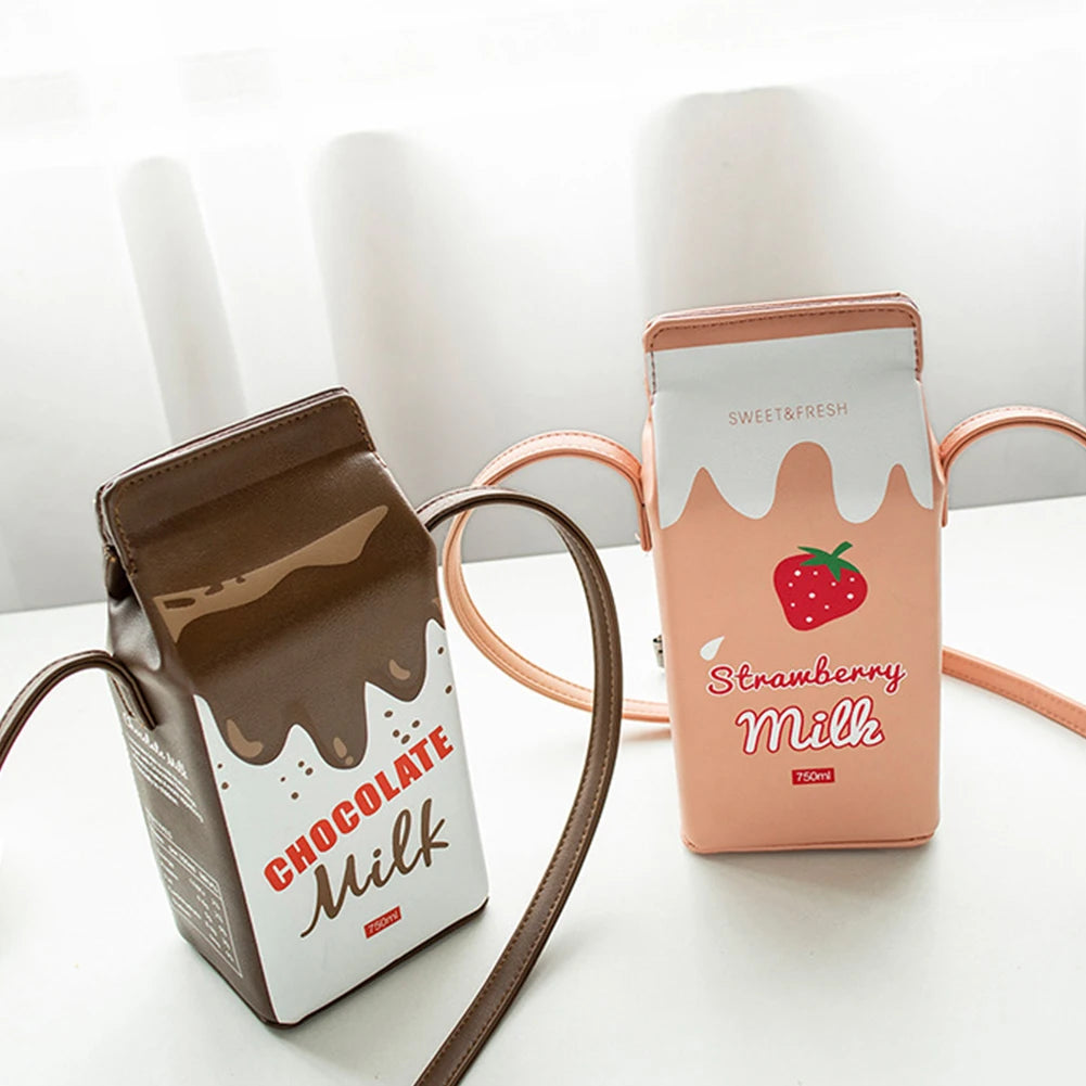 This cute shoulder bag features a lovely milk cartoon printing design, perfect for women to carry coins and phone in style.