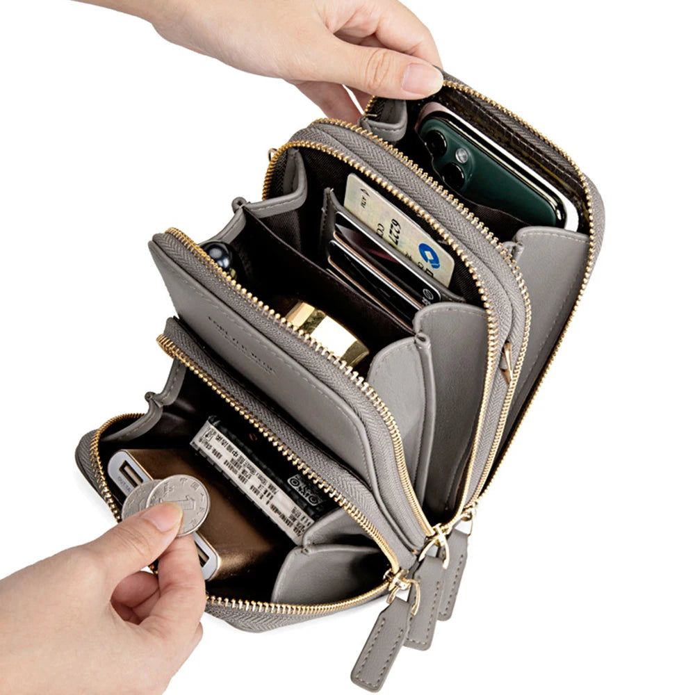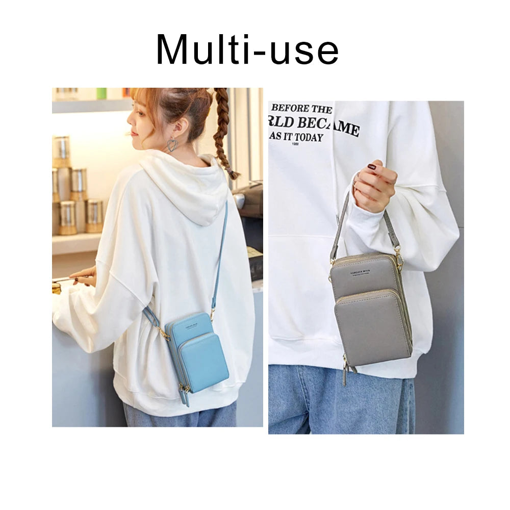 Stay organized and stylish with this small shoulder bag featuring a touch screen phone pocket. Perfect for carrying your essentials while on the go.