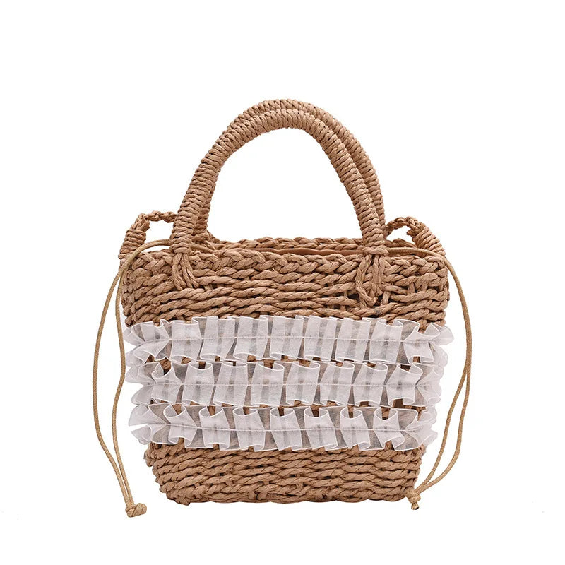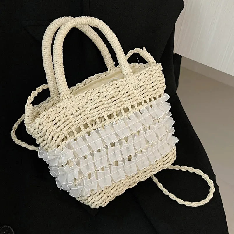 Mori Straw Woven Beach Bag Casual Messenger Bucket Bag