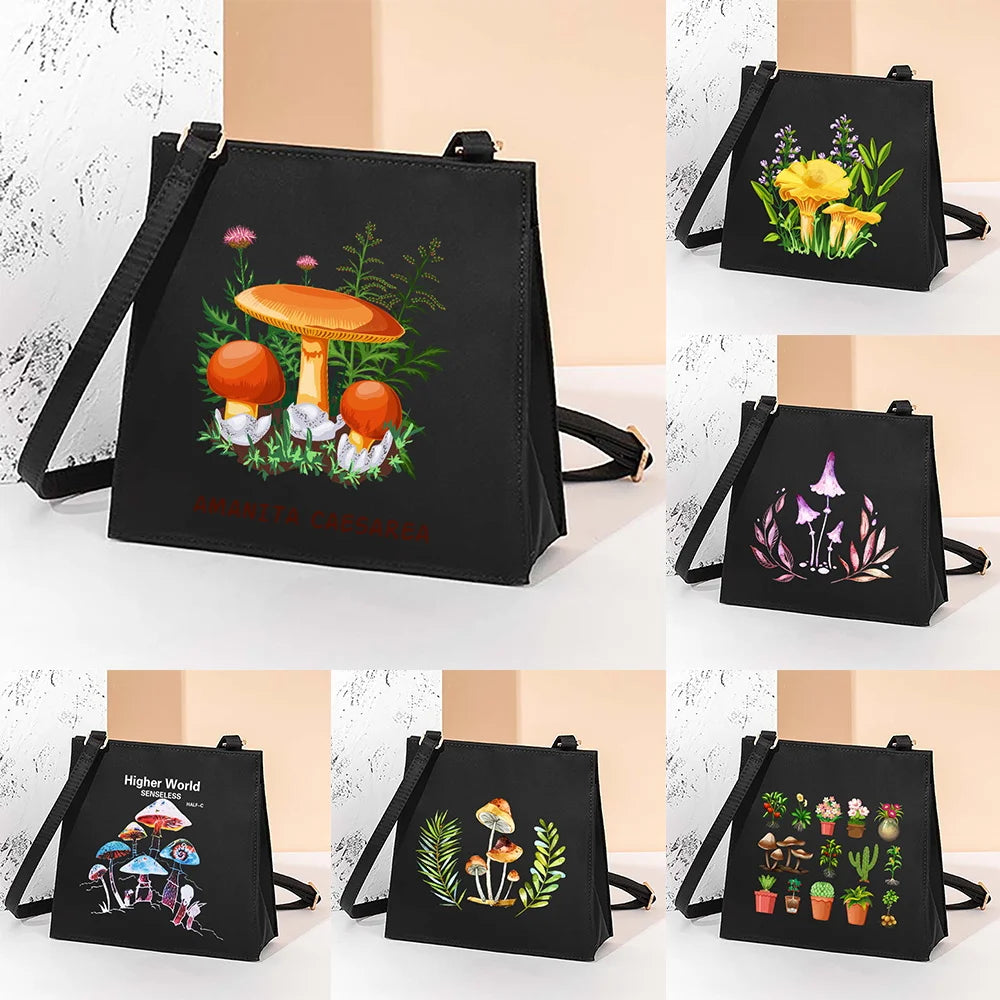 Mushroom Pattern Square Messenger Shoulder Bag Women's Tote Bag