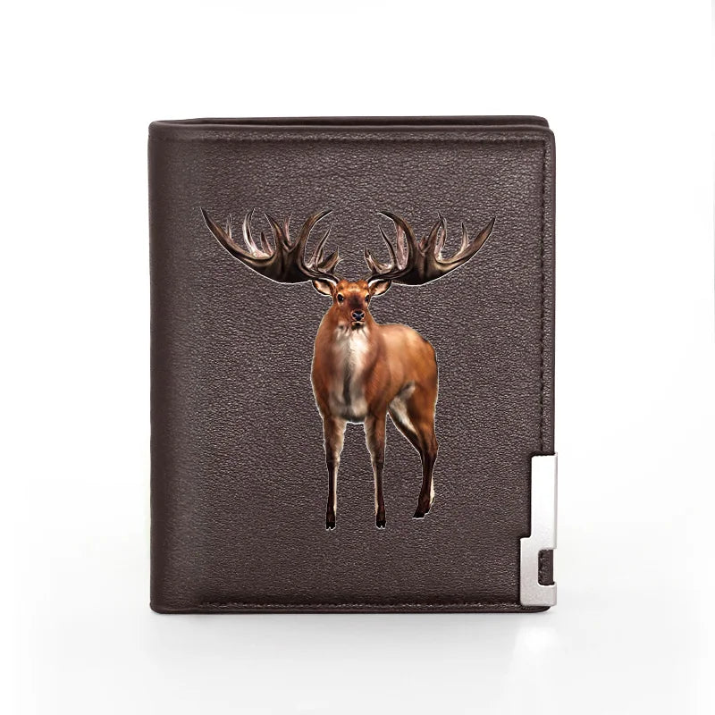 This classic leather wallet features a mysterious elk print design and is suitable for both men and women. It has multiple compartments for bills, credit cards, and IDs, making it a practical choice for everyday use.