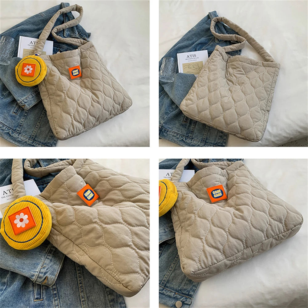 This nylon shoulder bag is perfect for women on the go. It features a stylish plaid design that adds a touch of elegance to any outfit.
