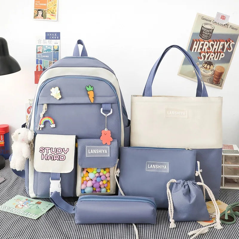 Nylon Packback Bags Women Bag Set with Pencil Bag Lunch Box Backbag