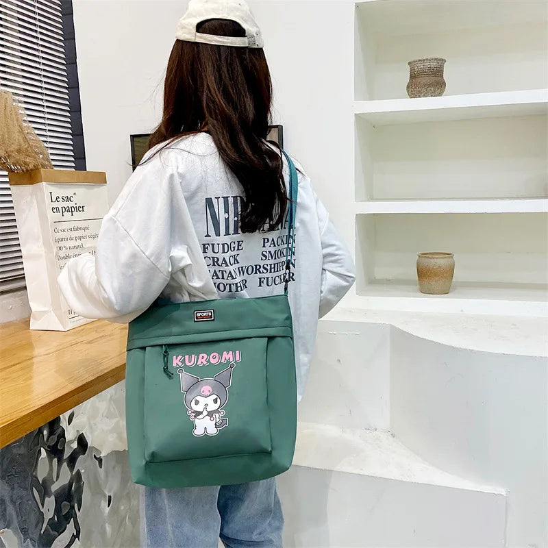 This large capacity student messenger bag features a cute cartoon design, perfect for carrying essentials in style.