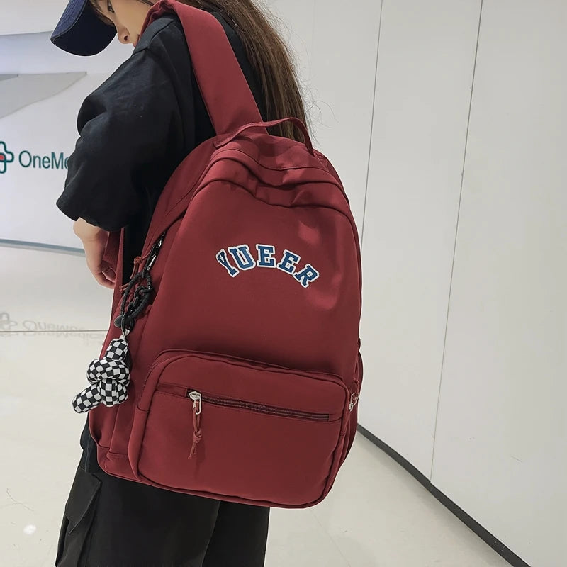 Stay stylish on the go with this preppy girls backpack featuring letter printing. It's made of durable nylon, perfect for travel and daily use.