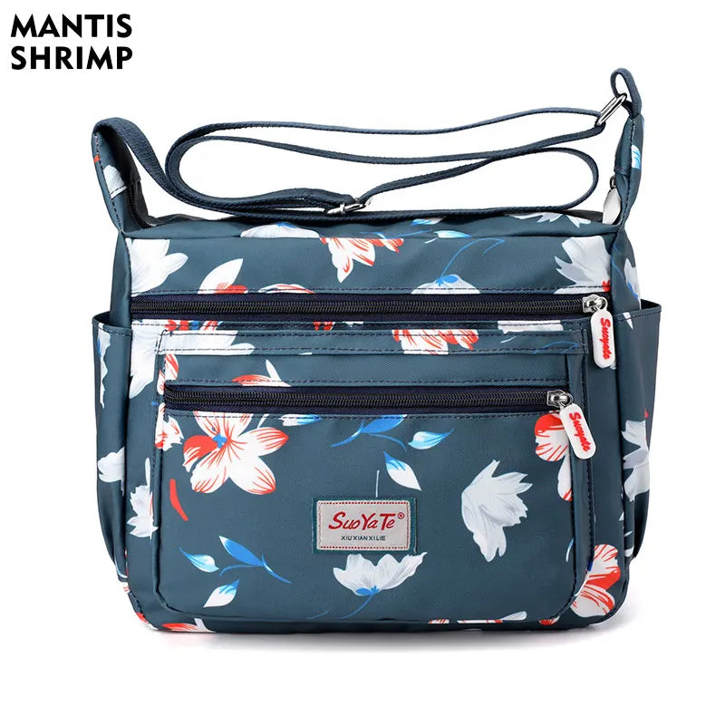 Nylon Women Shoulder Bag Floral Pattern Messenger Bag Casual Travel Pack