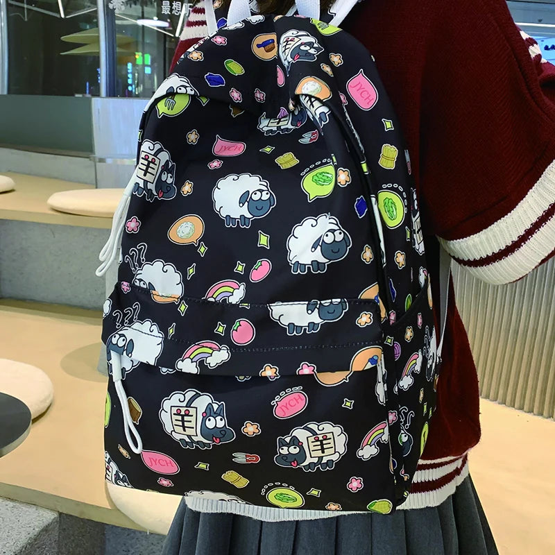 This nylon backpack is perfect for teenagers and girls. It features cute cartoon designs and offers a large capacity for school or travel.